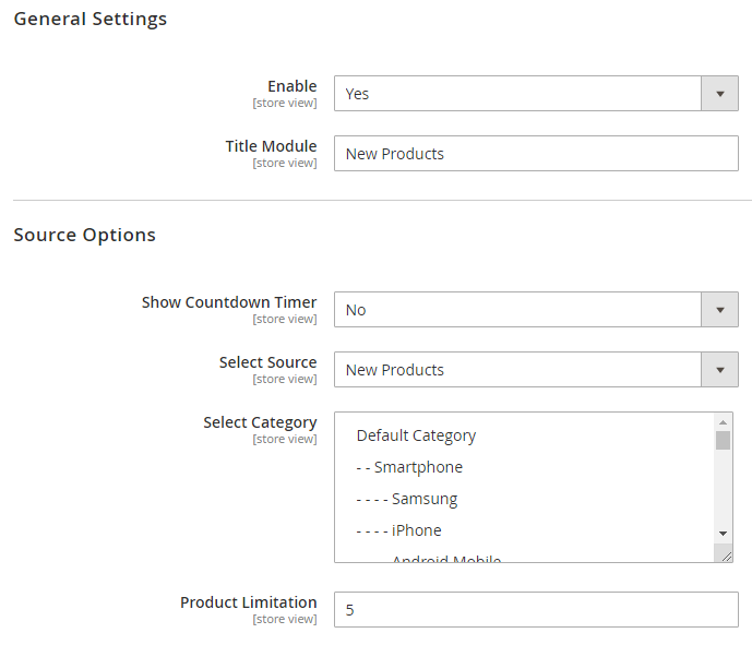 Select Category: Allow you to select Category.Category Limitation: Allow to set category limitation.