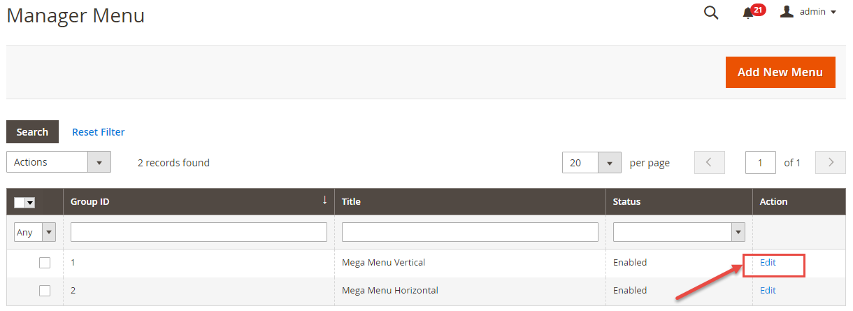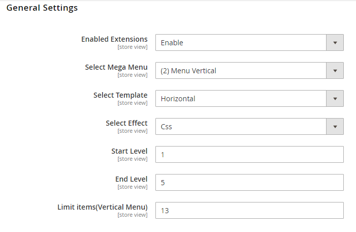 Enable Extensions: Allow to enable/disable the module. If choose "Disable", magento's default menu style will be applied.