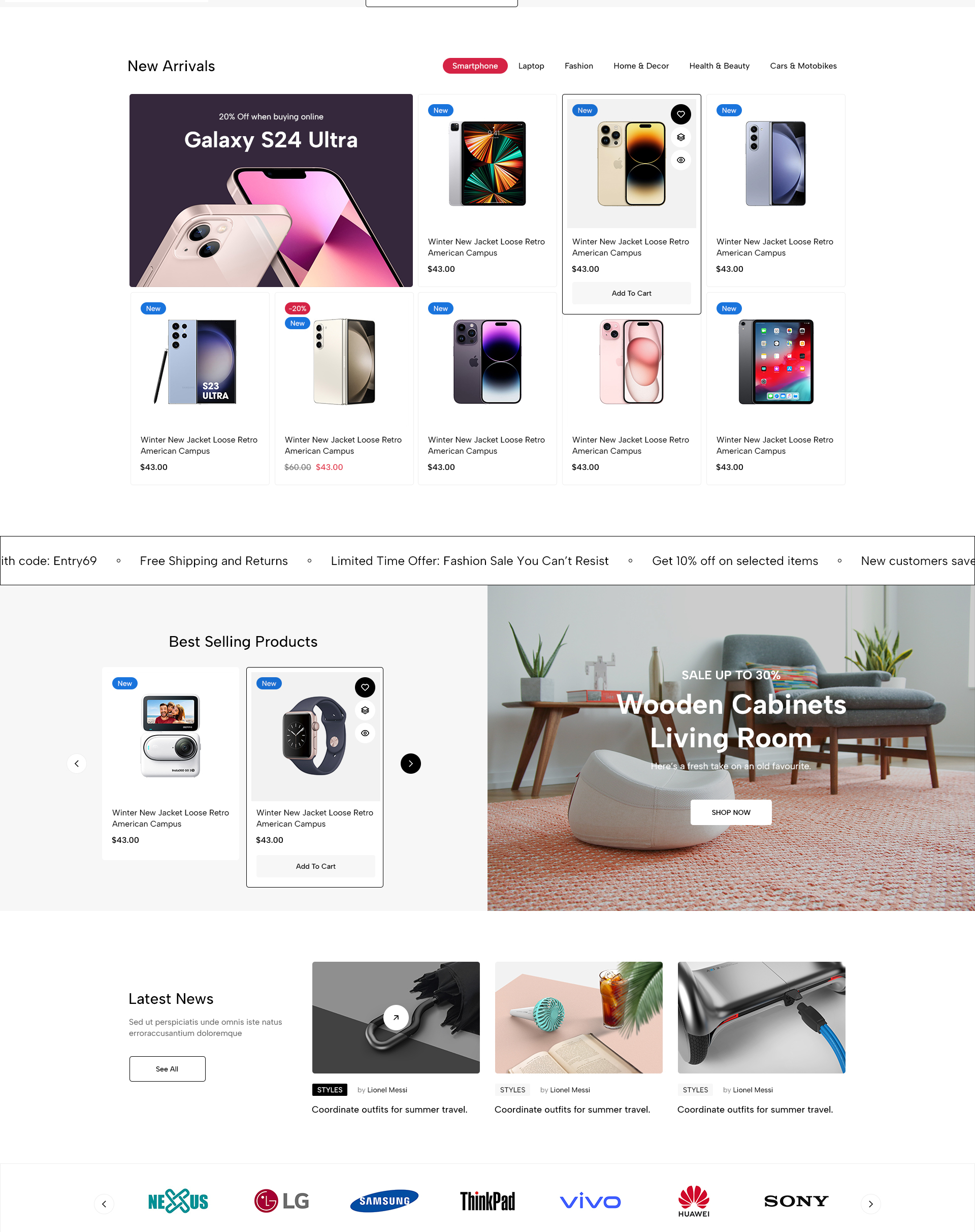 We provides flexible grid system includes: layout 1 column, layout 2 columns, layout 3 columns. You can change product's quantity per row to fit each screen.