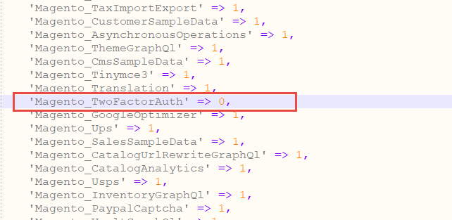 Please open fileapp/etc/config.phpand change 'Magento_TwoFactorAuth' => 1 to 'Magento_TwoFactorAuth' => 0
