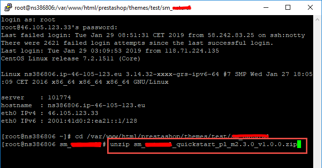 - Step 2: Please download 'sm_entry_theme_m2.4.x_v1.0.0.zip' file and upload to the root of your magento site folder on your server, after that unzip by command