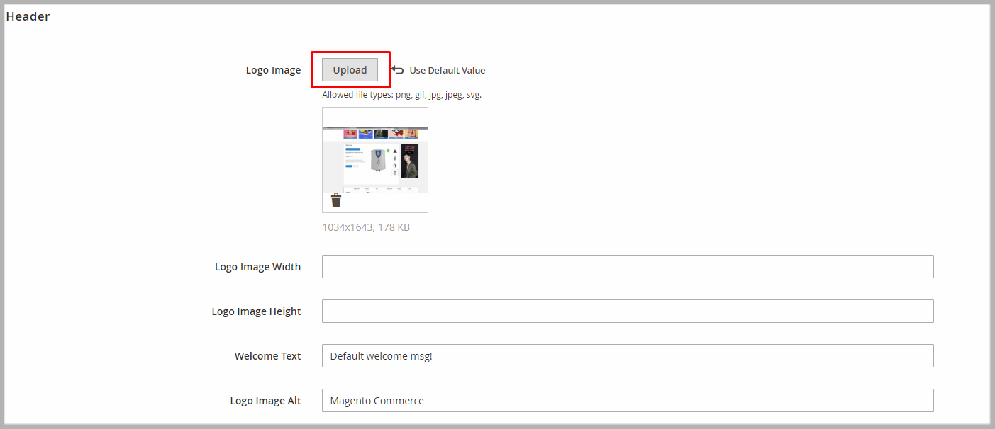 To change logo, in admin panel please go to Content >> Configuarion >> Edit Store >> Header tab. After, upload logo that you want.