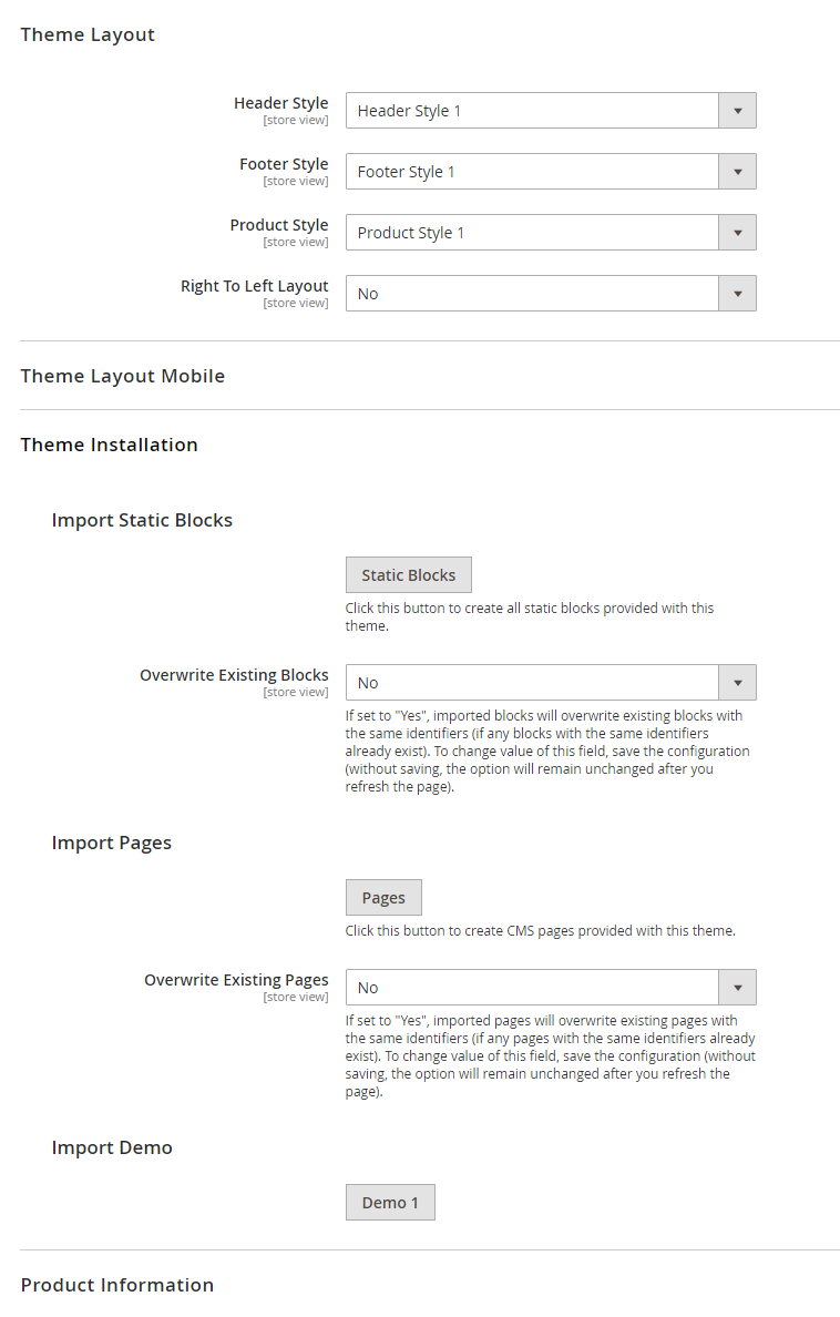 - Manual Installation (including Theme Installation): Manual Installation (including Theme Installation): Suitable if your store is full with data/content (category, products...) that you don't want to overwrite.