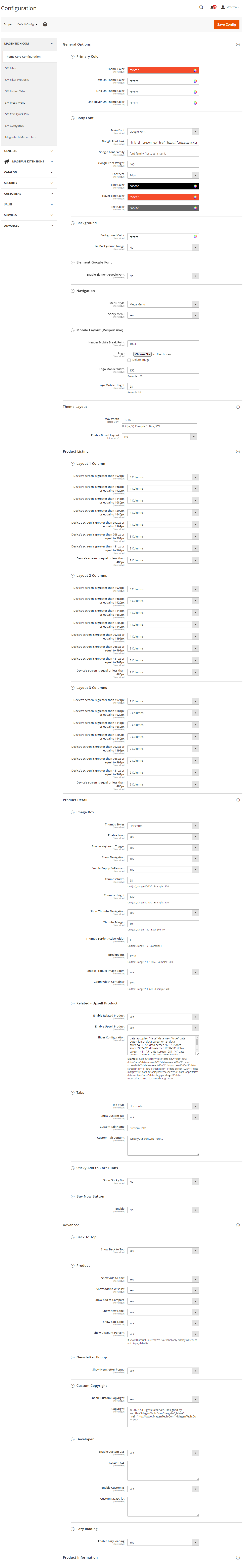 In Magento admin panel, navigate to Stores >> Settings >> Configuration >> MagenTech.COM >> Theme Core Configuration and configure as you want.